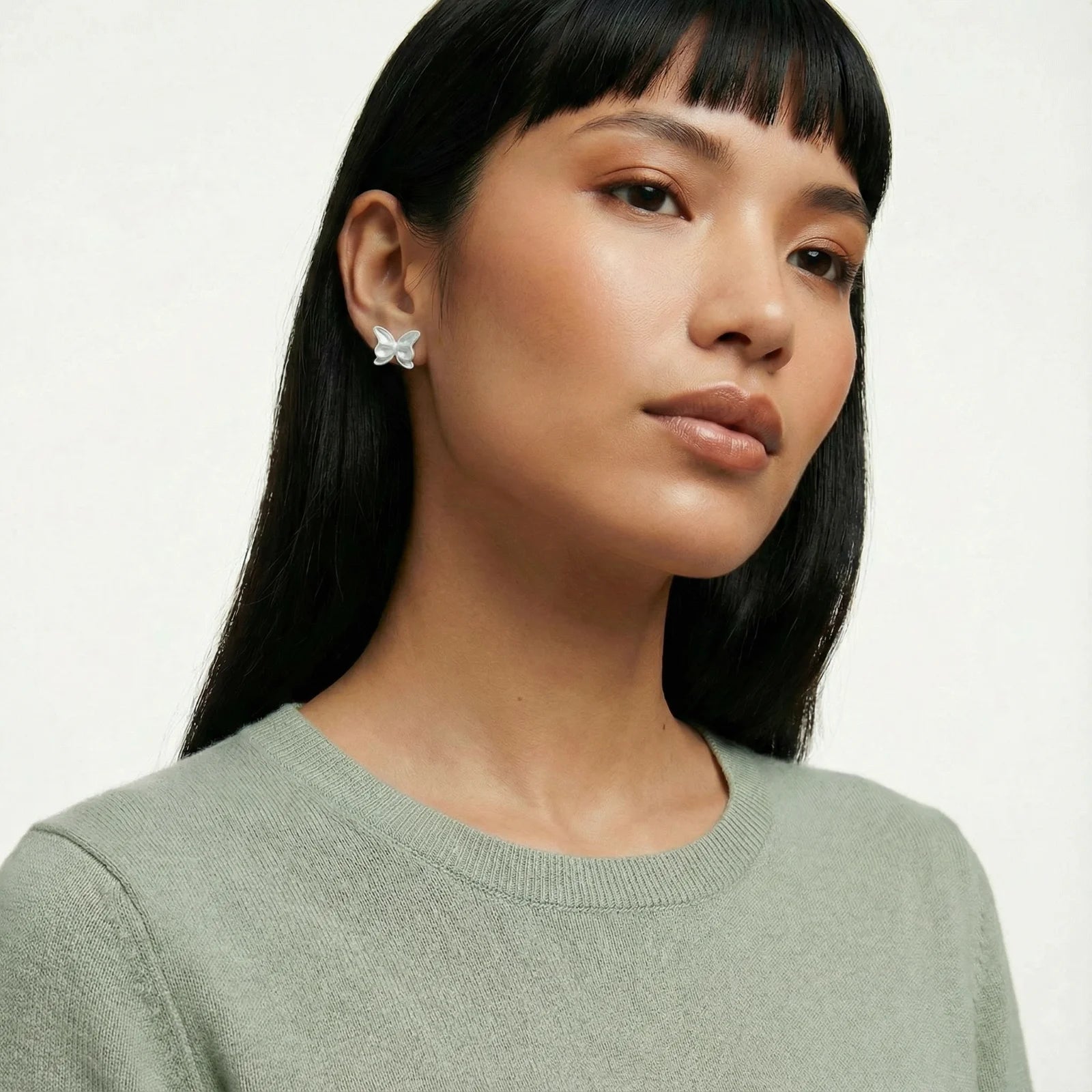 These ethereal butterfly studs in sterling silver catch light like morning dew—silver enhances intuition and emotional balance, making them your go-to for first dates or manifesting that dream internship.